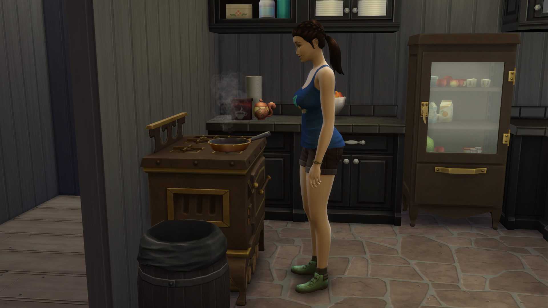 My first fire! I don’t know how I did it but next thing I knew, my baked potatoes were up in flames! Naturally I had to replace the grill which ran me $650 simoleons. This left me with a household funds total of $702. Ugh! I had gotten so far! I mean I’m glad that I sprang into action and put it out but am beyond frustrated at this turn of events!